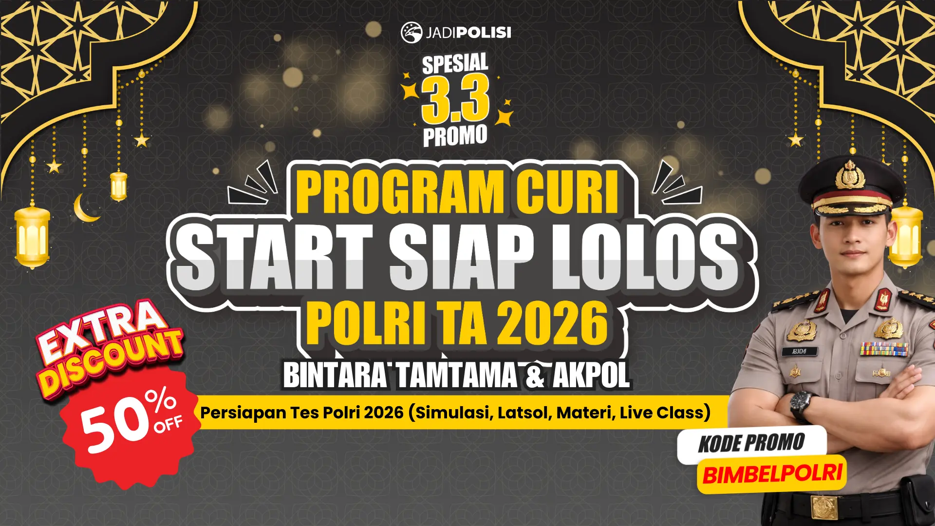 - Gunakan Kode Promo: Masukkan kode “BIMBELPOLRI” untuk mendapat diskon spesial sesuai poster promo